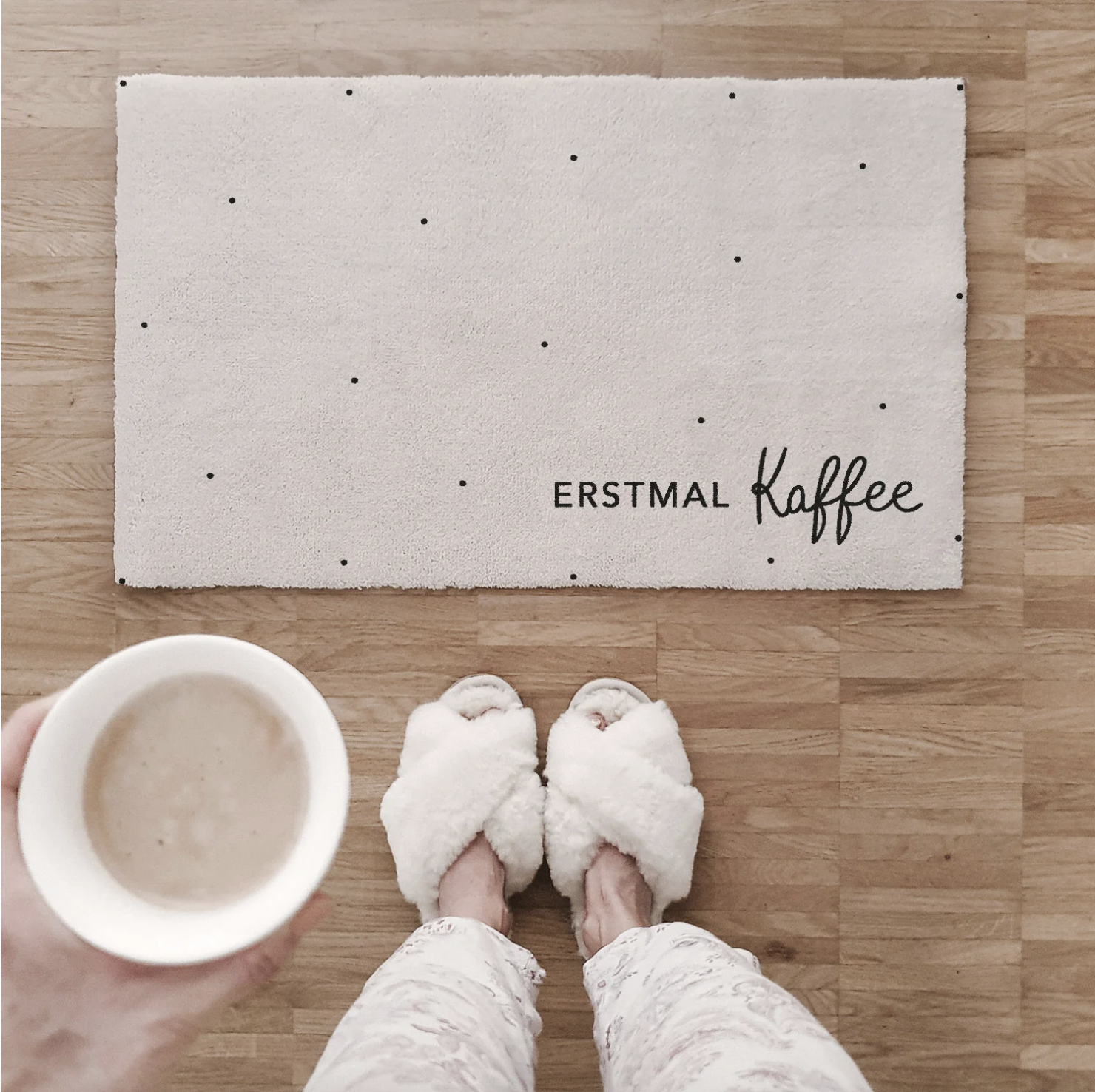 Es ist noch früh, man wankelt noch ganz zerknautscht aus dem Schlafzimmer, halb Mensch, halb Kissen – und wird schon im Flur begrüßt: von einem weichen Teppich, der einem sagt: „Schön, dass du da bist.“ Da ist die gute Laune doch schon vorprogrammiert!