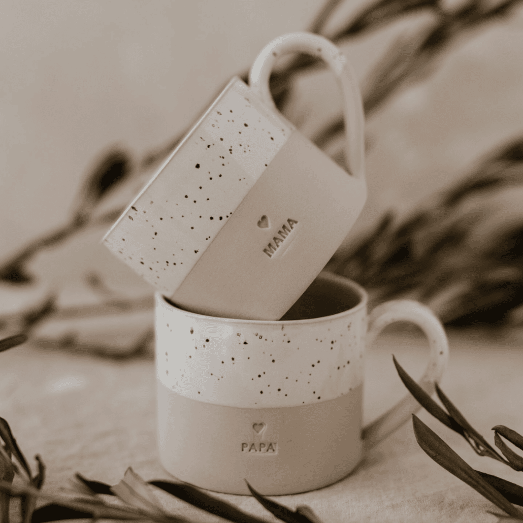 Jetzt kommt der wichtigste Moment des Tages: die erste Tasse Kaffee. Und der schmeckt in den handgemachten Eulenschnitt-Steinguttassen doppelt so fein! Das einzige Dilemma: Becher oder Tasse? Lieber mit dem kleinen eingravierten Herzchen auf der Vorderseite oder doch lieber der Prägung „Lieblingsmensch“?