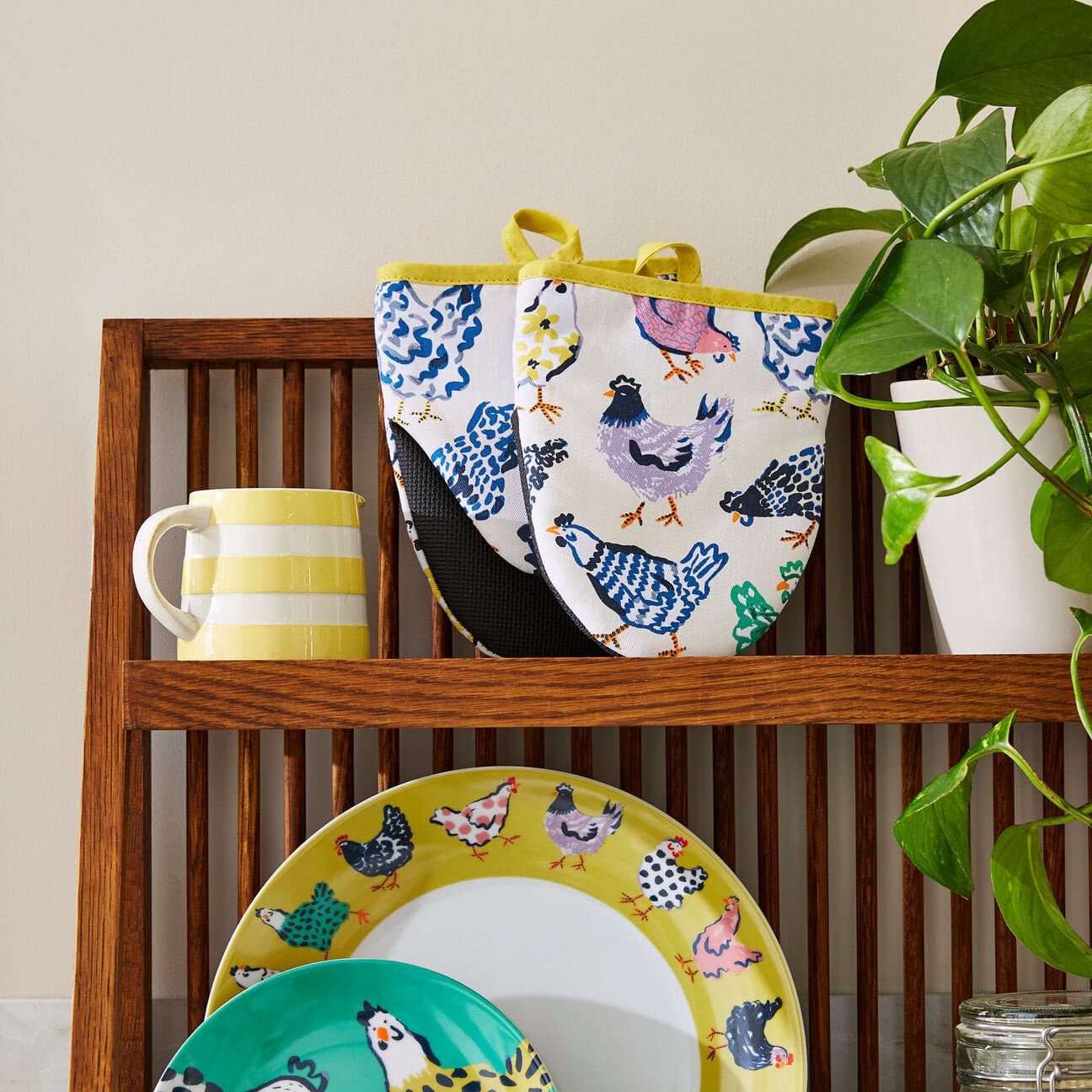 - 100% Baumwolle, wattiert (Polyesterfüllung), Neopren an den Handflächen